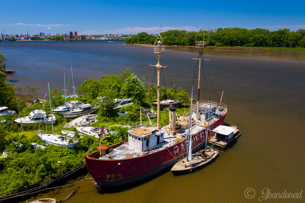 Above is the lightship Barnegat, LV-79, 1904, stuck in the mud at the defunct Pyne Poynt marina in Camden. The site and the vessel were acquired by Camden County in 2023. Soon after, the county announced the intention of restoring the vessel, but since then nothing has been done, and I doubt anything ever will be. The vessel is in pretty bad shape, stripped of anything of worth, and Camden has more pressing needs for its budget dollars.
