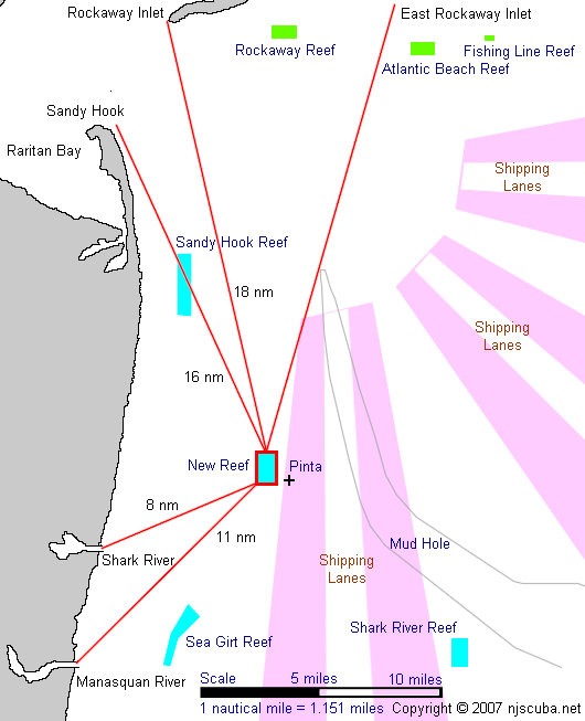 - It is close to a popular fishing and diving wreck - the Pinta, so you know this run is not too far. It is very convenient to Shark River inlet, not bad for Manasquan and Raritan Bay, and about as good as it gets for Rockaway.