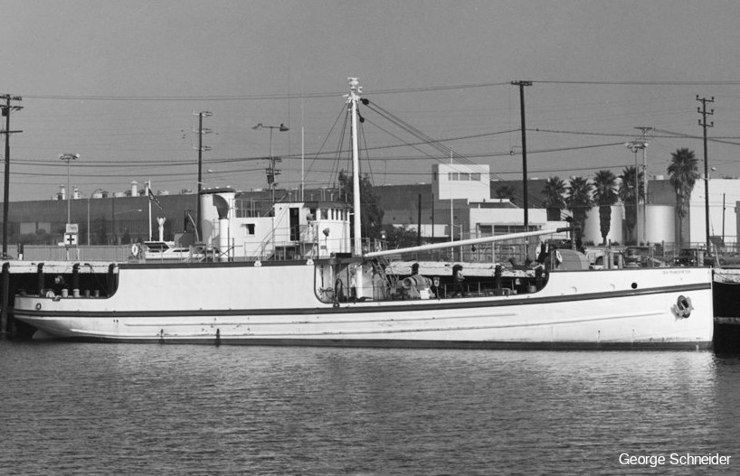 YF-879 was sold by the Navy in 1974 and became marine survey ship Sea Transporter. By 1977 the vessel had been moved from southern California to Port Arthur Texas for a government study in the Gulf of Mexico, which was published in 1979. For the survey, Sea Transporter was equipped with side-scan sonar and underwater video cameras. Later the vessel was converted to commercial fishing, and finished its days in New Jersey. Exactly how it was modified for fishing is unclear, although it appears a deckhouse was added over the cargo hold.